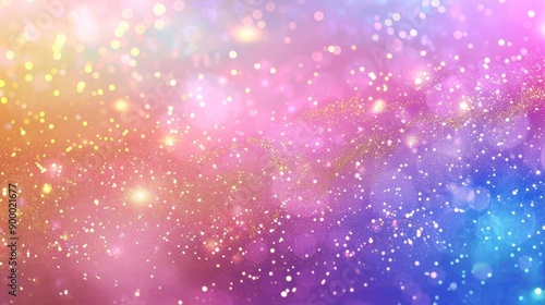 Glittering gradient background with hologram effect and magic lights. Holographic abstract fantasy backdrop with fairy sparkles, gold stars and festive blurs - generative ai