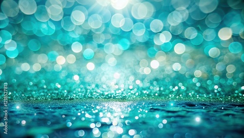 Glittery Aqua Turquoise Bokeh Background with Sparkling Water Droplets and Teal Green Reflections, aqua turquoise bokeh, underwater scene
