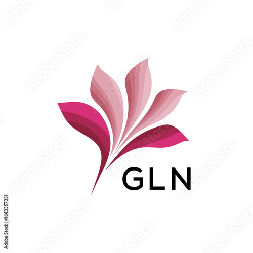 GLN Modern Pink Floral Logo Design on White Background, GLN Later Logo, Abstract Pink Flower Petals Logo with Typography