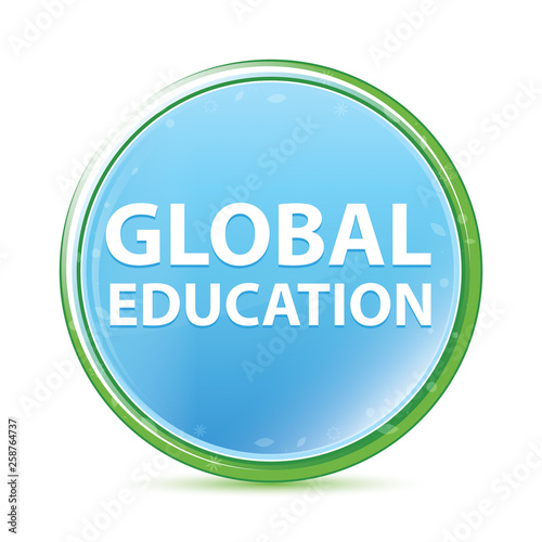Global Education natural aqua cyan blue round button