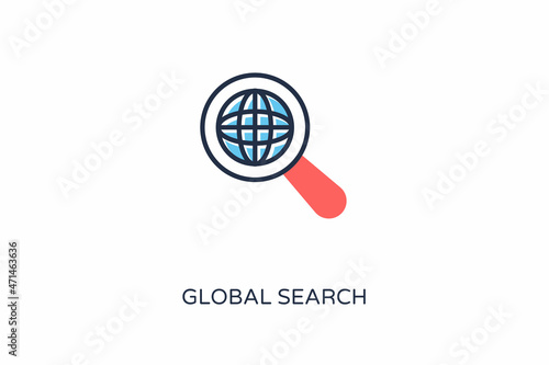 business, finance, signs, symbol, outline, icon, isolated, illustration, vector, stroke, colours, cyberspace, earth, magnifier, discover, glasses