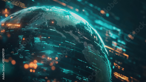 Globe in the concept of global economic network, connectivity in the digital age.