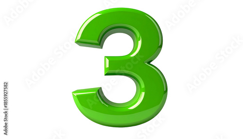 Glossy green numeral three, 3D rendered, floating against a black background. Simple, bold design, perfect for educational content or counting