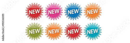 Glossy "NEW" Starburst Badges Set with Gradient Colors, Modern Vector Icons for Eye-Catching Promotions and Product Highlights