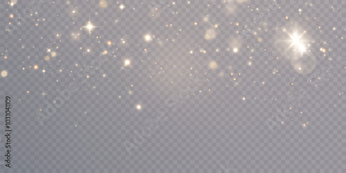 Glowing bokeh and glitter effect with bright dust particles isolated on transparent background. Star cloud vector with glare and sparkle. For holiday and advertising design.