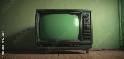 Glowing CRT screen, heavy static Vintage TV's green hue , crt, noise, glow