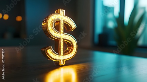 Glowing Dollar Symbol and Analytical Graph on a Clean Workspace for Financial Growth Visuals