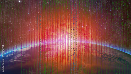 Glowing earth with binary code "Elements of this Image Furnished by NASA"