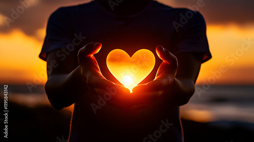 Glowing Heart in Hands - Illustration Representing Love and Compassion
