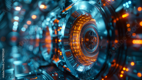 glowing, holographic, vault, science fiction, blue, silver, futuristic, hologram, technology, cyber, high technology, advanced technology