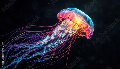 glowing, jellyfish, isolated, black, background, colourful, neon, light, effect, tentacle, floating, water, darkness, underwater, animal, nature, transparent, blue, abstract, medusa, aquarium, invertebrate, dark, deep, purple, fish, pattern, illuminated, art, iridescent, shape, beauty, design, red, biology, fantasy, futuristic, moon, nebula, smooth, surreal, swimming, undersea, chandelier, illustration, modern, poisonous, turbulence, bright