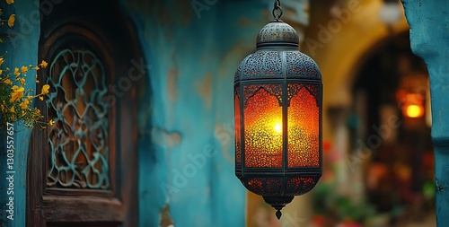 lantern, glowing, warm light, hanging, cosy, artistic, alleyway, illuminated, atmospheric, inviting, vibrant, decorative, intricate, moody, elegant, cultural, traditional, charming, beautiful, enchanting, festive, serene, peaceful, stunning, golden light, handcraft, night scene, exotic, timeless, rustic, mesmerizing