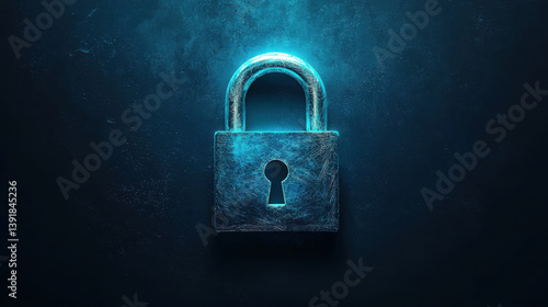 glowing metallic padlock on dark textured background symbolizes security and protection