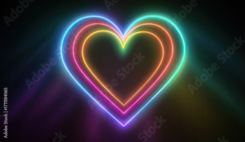 Glowing Neon Heart Symbol with Colorful Light Lines on Black Background.