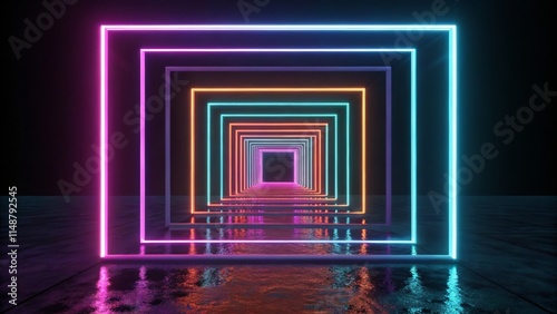 neon, rectangle, glowing, light, alignment, tunnel, vibrant, colours, symmetry, illumination, design, background, modern, abstract, geometric, artistic, digital, bright, depth, perspective, aglow, glow, technology, space, futuristic, minimalism, exhibition, ambience, eye-catching, visualisation, frame