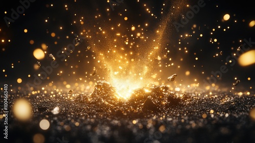 glowing, particle, burst, background, radiant, gold, light, bokeh, sparkle, explosion, aglow, energy, glistering, shimmer, abstract, shine, bright, dynamic, to illuminate, dark, fireworks, twinkle, stellar, effervescent, brilliance, captivating, vibrant, festive, dazzling, spectacle, celestial, celebration, cosmic, mystic, atmosphere, glimmering, radiance, aethereal, magical, fantasy, aurora, enchanting, dramatic, warm