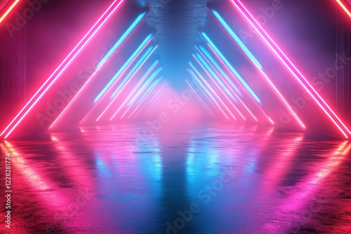 neon, futuristic, tunnel, light, pink, blue, glowing, mist, reflective, wet, floor, aesthetic, symmetric, perspective, atmosphere, vibrant, design, environment, technology, visual, glow, space, energy, colours, brilliance, art, creativity, modern, architecture, digital, illusion, symmetry, depth, night, haze, illumination, ambience, bright, line, urban, earth, unique, aglow, striking, mixed