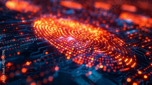 Glowing red fingerprint over a circuit board