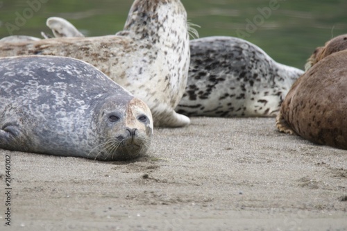 Goat Rock Beach - northwestern Sonoma County, California. Seals are on the mouth of the Russian River. and the southern end of this crescent shaped expanse is the massive Goat.