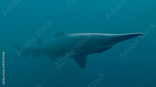 Goblin Shark (Mitsukurina owstoni), 3D rendered