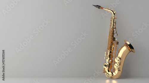 music, instrument, saxophone, alto, gold, brass, musical, melody, jazz, blues, rythm, sound, tone, note, concert, performance, band, orchestra, studio, art, design, style, elegance, classic, vintage, retro, shiny, gleam, object, texture, detail, background, grey, simple, clean, minimal, copy, space, isolated, single, 1, composition, wind, key, reed, metal