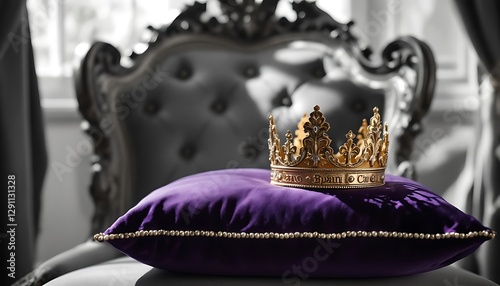 crown, gold, purple, pillow, chair, regal, royalty, king, queen, throne, luxury, prestige, power, majesty, empire, fantasy, mediaeval, vintage, antique, decoration, photo, prop, image, royals, elegant, rich, opulence, symbol, monarchy, sovereignty, authority, leadership, heritage, history, tradition, design, art, decor, royalty free, stock, photo