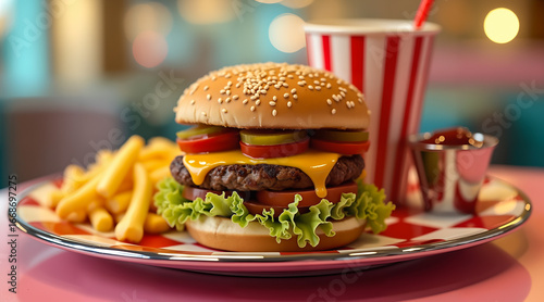 retro, cheeseburger, dinner, food, burger, hamburger, snack, eatery, soda, illustration, meal, fast, fries, lunch, sandwich, vintage, menu, tasty, cheese, drink, background, unhealthy, dinner, poster, vector, delicious, fried, beef, meat, american, cafes, cookery, design, cooking, lettuce, ketchup, hot, sticker, bread, fat, breakfast, beverage, french, junk, set, cartoon, tomatoes, label