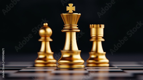 Golden Chess Pieces on Board with Black Background for Strategy Themes