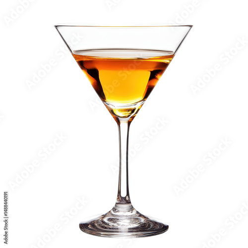 Golden cocktail served in a classic martini glass on a clean white background, Glass alcohol cocktail on background, white background