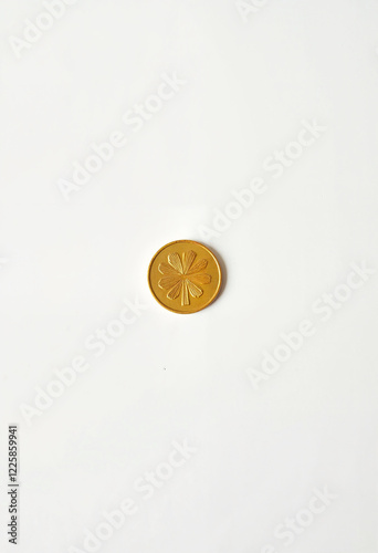 Golden coin with floral design on white background