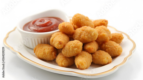 Golden Crispy Chicken Nuggets with Ketchup on Elegant Plate