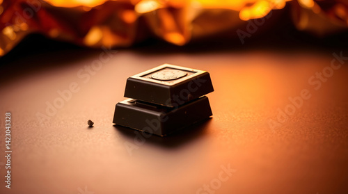 Golden details emerge softly behind the chocolate, suggesting class and minimalist indulgence.