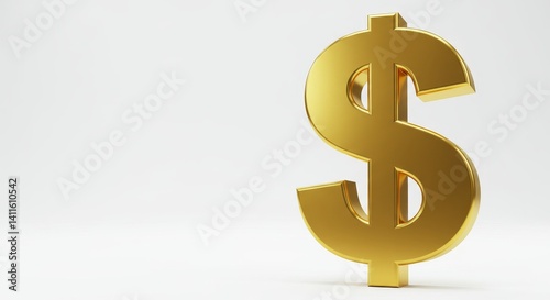 Golden Dollar Symbol on White Background - A 3D golden dollar sign, symbolizing wealth, finance, investment, success, and prosperity. Clean and simple design
