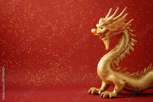 prosperity, luck, fortune, 2025, gold, dragon, figurine, red, background, celebration, traditional, chinese, lunar, new, year, holiday, asian, festival, symbol, festive, culture, event, folklore, creature, decoration, greeting, happy, east, asia, tradition, celebrate, china, oriental, zodiac, eastern, ethnicity, horoscope, calendar, gold, copy, space