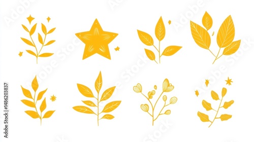 gold, floral, element, collection, design, decorative, set, illustration, vector, pattern, leaf, branch, star, plant, nature, yellow, gold, outline, simple, graphic, abstract, modern, art, illustration, beauty, aesthetic, foliage, organic, creative, graphic, pattern, texture, symbol, stylish, trendy, artistic, minimalist, isolated, background, shape, elegant