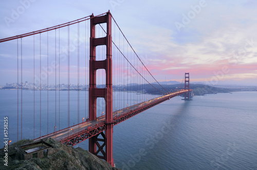 golden gate bridge, bay bridge, skyline, suspension, sunset, california, dusk, landmark, historical building, bay, holiday maker, travel, tour tourism, red, transportation, attraction, ocean, famous, pacific, connection, water, architecture, cable, city, sea, road, historic, sky, blue, metal, vacation, marin, night, light, historical, structure, cable, frisco, beauty, ruin, old, fortification, right