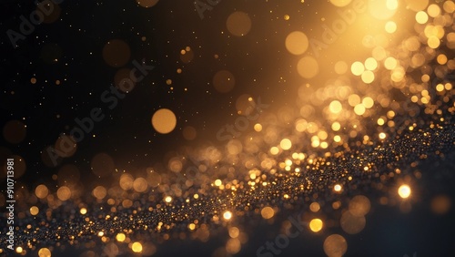 Golden Glitter and Bokeh Background with Sparkling Lights