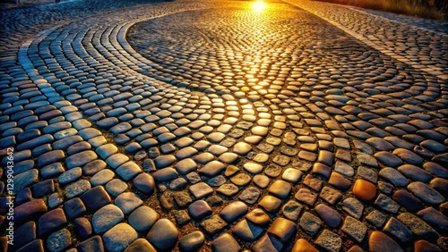 Golden Hour on a Cobblestone Path A Sunlit Perspective of Interlocking Stones