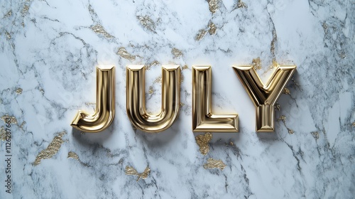 Golden July on Marble: Elegant gold lettering spelling out "JULY" rests on a luxurious marble background. Perfect for summer promotions, calendars, or seasonal content.