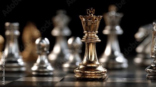 chess, game, strategy, king, gold, silver, piece, board, checkmate, competition, winner, leader, leadership, success, victory, challenge, intellect, mind, gameplay, leisure, hobby, classic, luxury, elegance, sharpened, concentration, tactic, operated, opponent, battle, war, conflict, decision, planning, risk, reward, business, finance, power, authority, symbol, abstract, dark, background, close