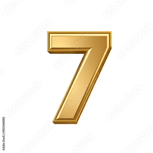 gold, number, 7, three-dimensional, render, digit, isolated, white, background, metallic, shiny
