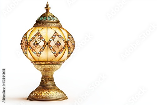 lamp, gold, ornate, lighting, elegant, design, round, metal, displayed, against, feature, caged, footed, art, digital, modern, creative, conceptual, detailed, artistic, graphic, visual, colourful, decorative, contemporary