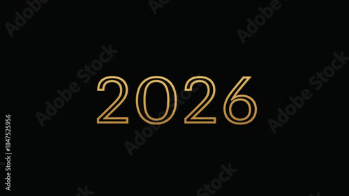 Golden outline of the year 2026 on a black background, futuristic and modern design element