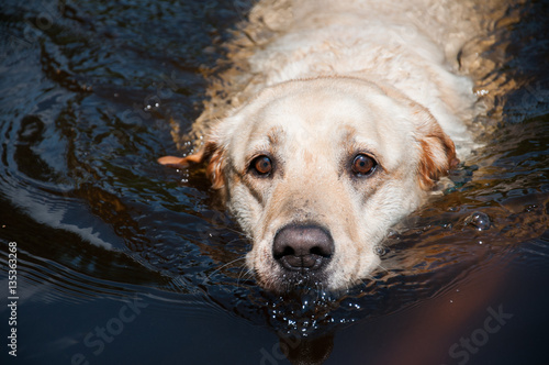 dog, animal, canino, hound, portrait, swim, water, lake, duck pond, river, wave, wet, waterside, reflections, mirroring, detail, closeup, pet, bubble, furry, fur, golden retriever, labrador, purebred, blooded, pedigreed, head, face, look, white, thoroughbred, brown, mammal, eye, nature, outside, wilderness, aquatic, fun, splash, clear, in motion, action, wavy, adult, playful, happy, domestic