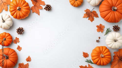 Golden roasted pumpkin slices are elegantly arranged on a plate, infused with rosemary and garlic, set against a minimalist white concrete background