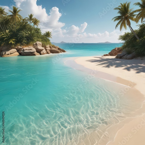 nature, clear, scenery, coast, shore, tropical beach, hot, wave, paradise, water, crystal, peaceful, tranquil, warm, sea, bright, white, beautiful, calm, dune, travel, serene, vibrant, blue, sun, vacation, island, sand, sky, get-away, exotic, coconut palm, turquoise, idylli, sunny, ocean, summer, horizon, picturesque, relaxing, palm tree, landscape, tropical