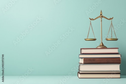 Golden scale balancing on stack of law books symbolizing justice and law studies