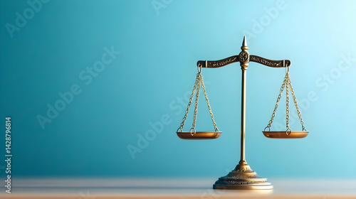 Golden Scale of Justice on Light Blue Background