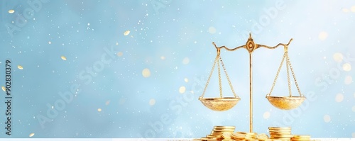 Golden scale with coins on one side, representing financial balance.