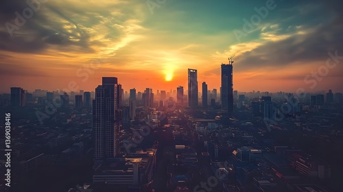 Golden Sunset Over Modern Cityscape, A Moment of Urban Tranquility